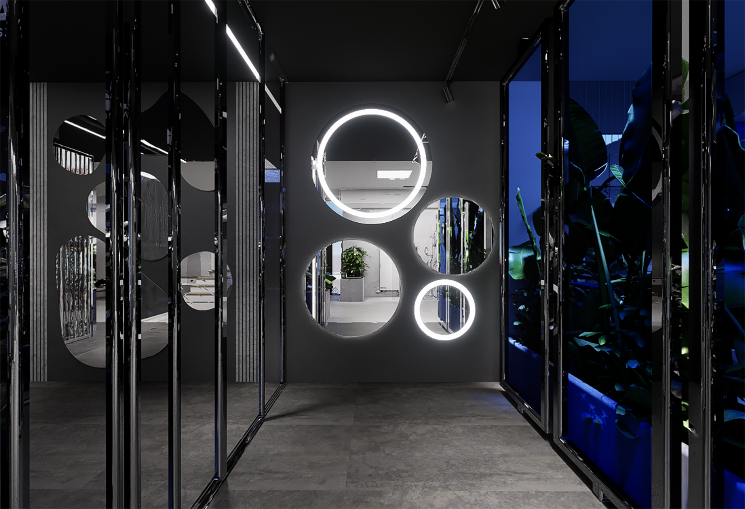Projekt dużej przestrzeni, w której wyeksponowano produkty Zakładu Przetwórstwa Szkła. Wnętrze zostało zaprojektowane w sposób spójny i funkcjonalny, z myślą o efektownej prezentacji materiałów. Konsekwentna kolorystyka nadaje mu wyrazisty charakter i podkreśla estetykę całej aranżacji.
